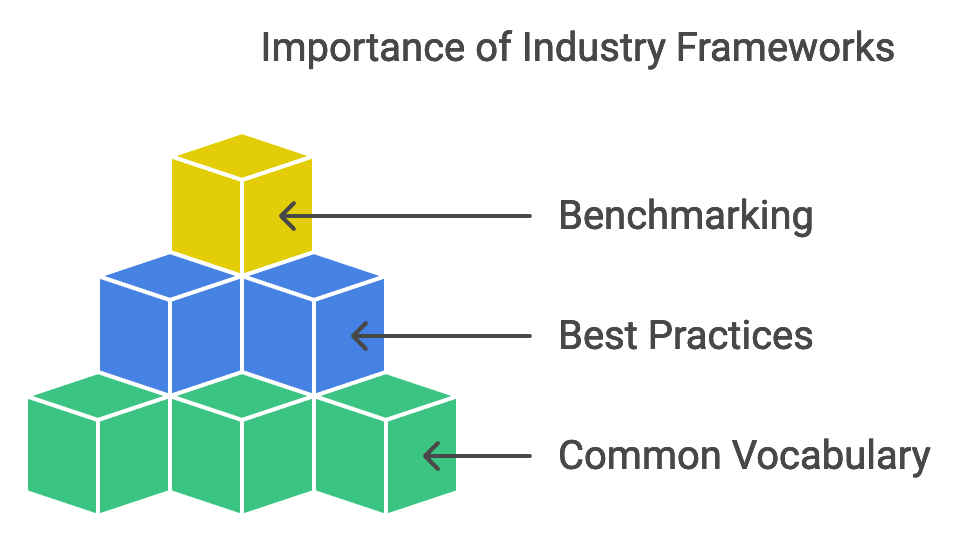 In summary, frameworks help in establishing a common language, practices and standards that industry choose to abide by - and for the overall progress of the ecosystem by facilitating interaction, integration and interoperability .